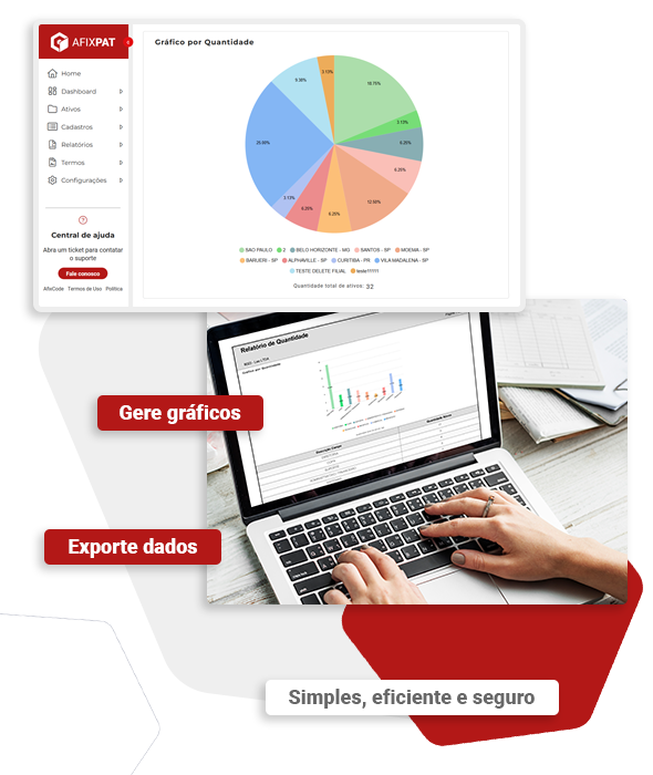 - Geração de relatórios completos com gráficos e filtros personalizados: Tome decisões baseadas em dados visuais e claros. O Afixpat permite gerar relatórios sob medida com diferentes tipos de gráficos.