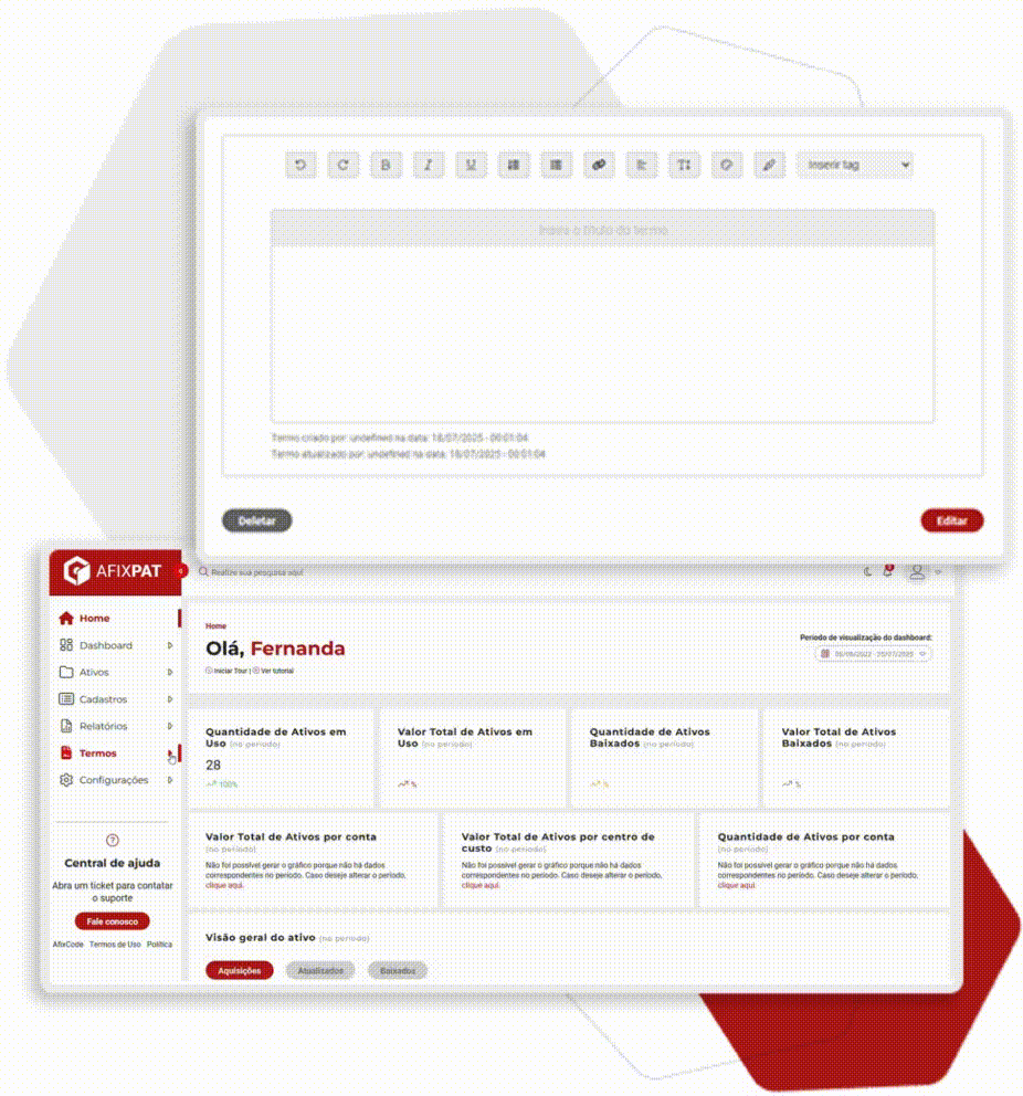 - Tudo integrado em um só lugar: Os painéis ficam disponíveis direto na interface do Afixpat. Fácil de acessar, fácil de entender.